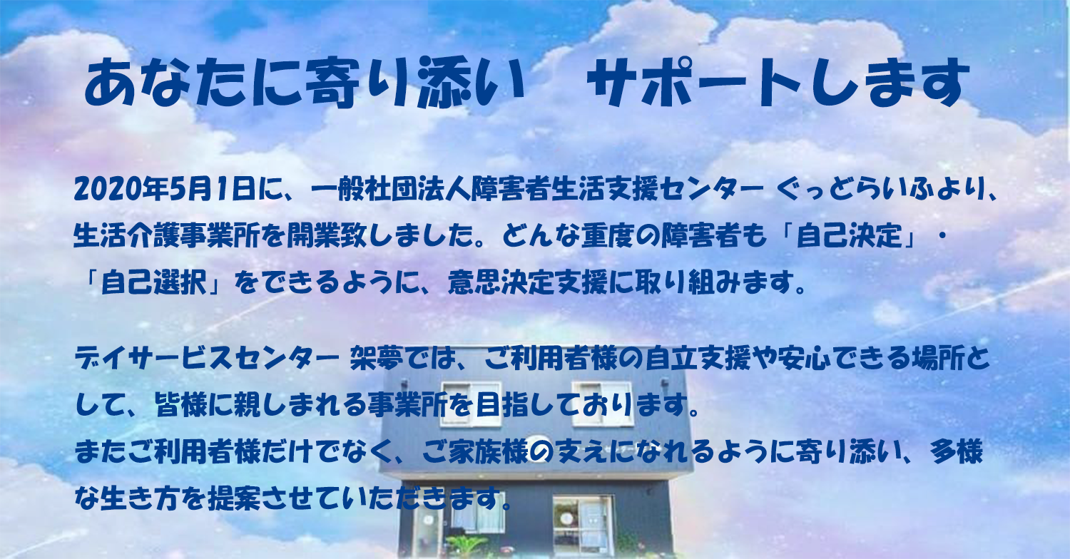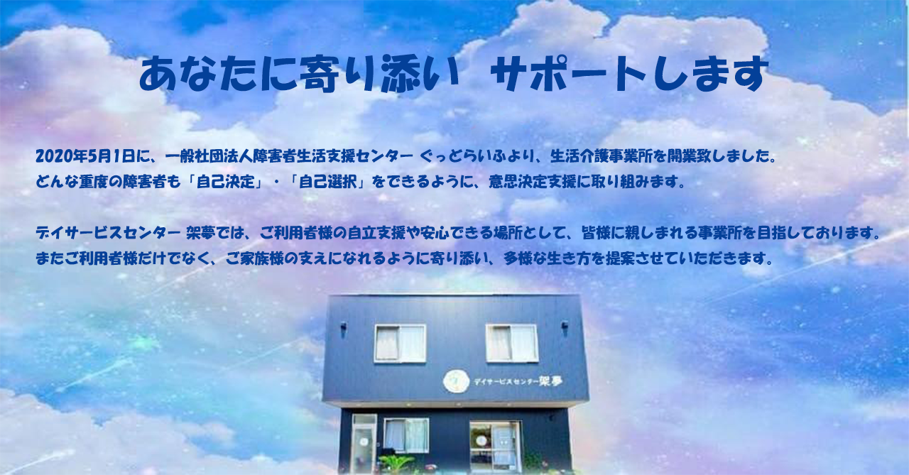 2020年5月1日に、一般社団法人障害者生活支援センター ぐっどらいふより、生活介護事業所を開業致しました。